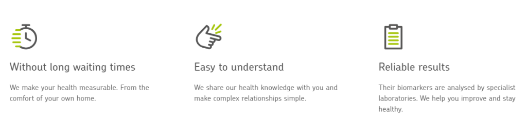 They explain in a user-friendly way how you order a kit, take your sample, send it back, and then get results via their portal/app. The emphasis is on removing barriers – “no long waiting times” is a phrase they use.