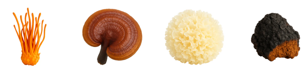 • Chaga: Acts as an antioxidant powerhouse for cellular defense.