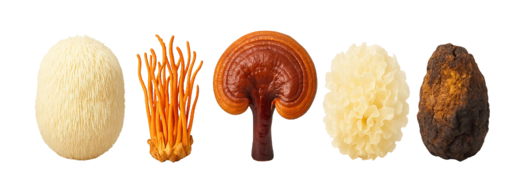 • Lion’s Mane: Known for supporting cognitive function, memory, and nerve growth.