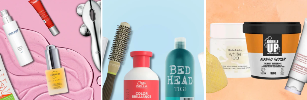 • Haircare: Maintain healthy, beautiful hair with shampoos, conditioners, styling products, and tools from trusted brands.