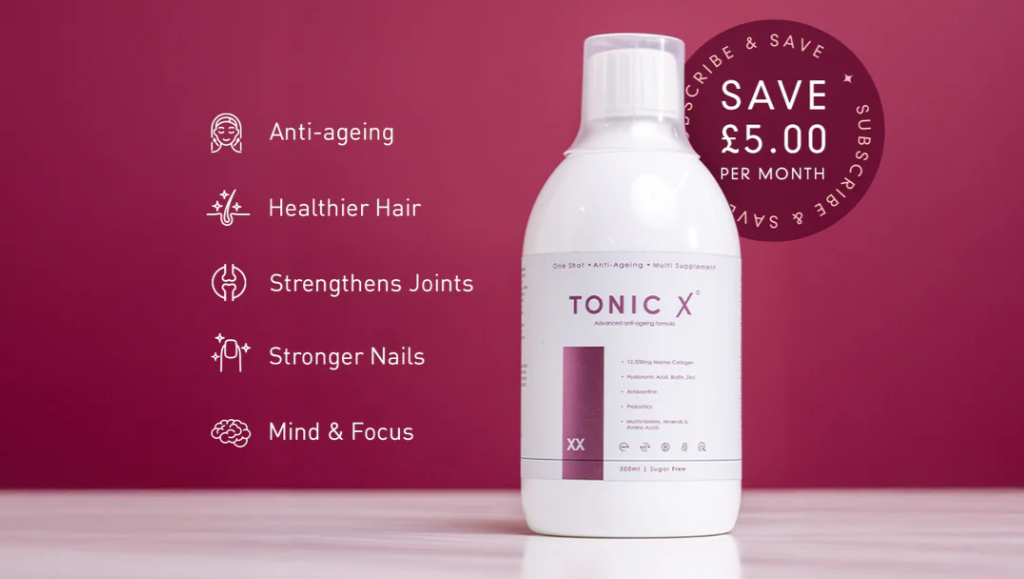 Tonic X is a UK-based wellness brand that offers a unique liquid supplement designed to support skin, hair, nails, and overall vitality. Created by two specialist nurses with a passion for health and ageing gracefully, Tonic X combines advanced anti-ageing ingredients, probiotics, vitamins, and minerals into a single daily shot. This formulation aims to simplify and optimise your supplement routine, providing a convenient and effective way to maintain health and wellness.