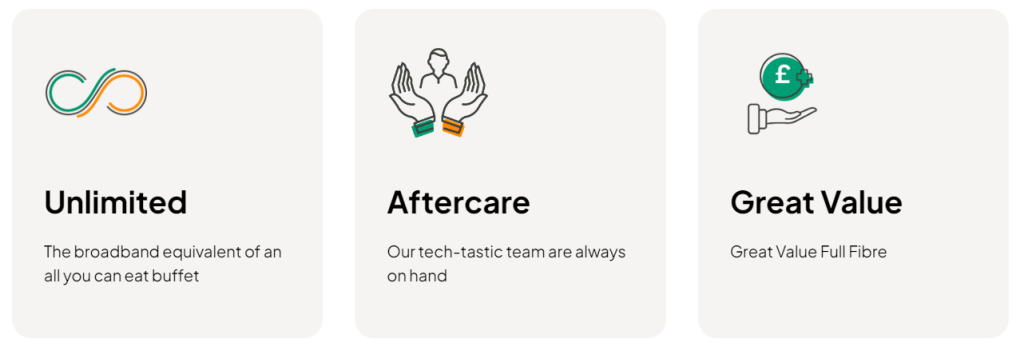 - Speeeee-diest: 1000 Mbps download and upload speed, starting at £28 per month, increasing to £31 in April 2026 and £34 in April 2027.