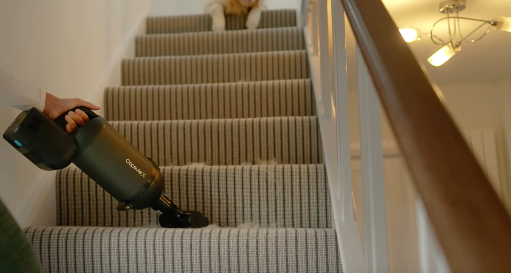 Designed for convenience, the Halo Capsule features a 1.6L dust capacity, reducing the frequency of emptying. Its compostable pouches ensure hygienic disposal without direct contact with dirt. The vacuum’s pivoting maneuverability and removable brushes make it easy to clean stairs and furniture. Additionally, interchangeable accessories allow for versatile handheld cleaning, all provided by CapsuleClean.