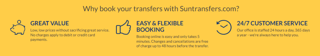 • Free Cancellation: Cancel your booking on Suntransfers up to 48 hours before the transfer without any charges.