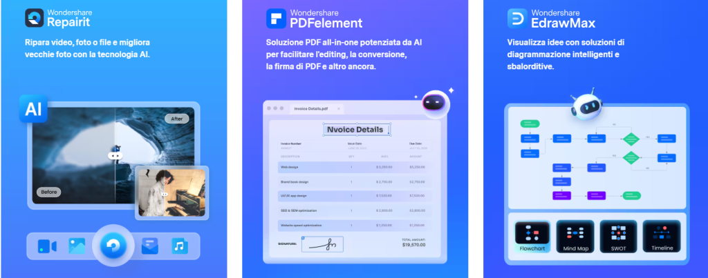 I software di Wondershare si distinguono per la loro capacità di risolvere problemi complessi con semplicità. Tra le soluzioni più apprezzate si trovano strumenti per l’editing video, il recupero dati, la gestione dei PDF, la creazione di contenuti digitali e la protezione dei dispositivi. La combinazione di stabilità, velocità e funzionalità avanzate rende i prodotti di Wondershare ideali per chi cerca strumenti affidabili e professionali.