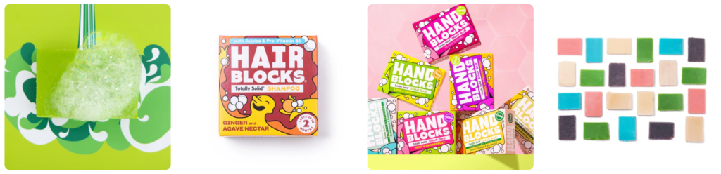 On the ShowerBlocks site, customers are met with a wide variety of solid personal care items: