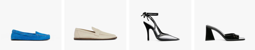 • Shoes: From pumps to sneakers to formal shoes, featuring designer labels.