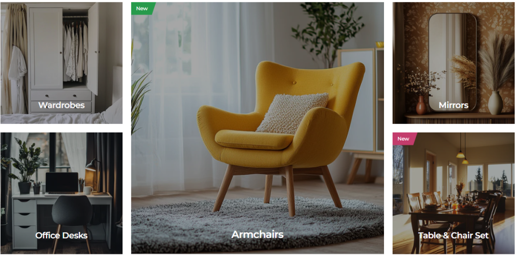 - Outdoor & Garden: Patio sets, garden seating, and other outdoor-friendly furniture to make the most of outdoor space.