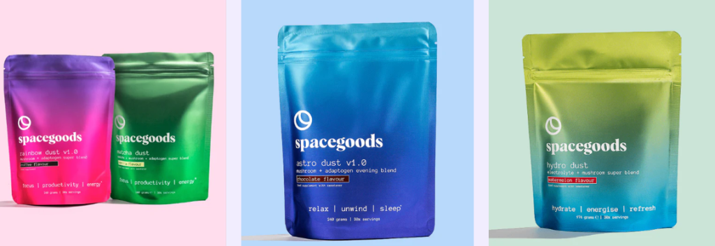 A core strength of Spacegoods is its user-friendly approach: rather than selling isolated supplement capsules, they offer “dusts” that can be mixed into a drink — making their wellness solutions feel more like a coffee or hot chocolate alternative, rather than a pill.