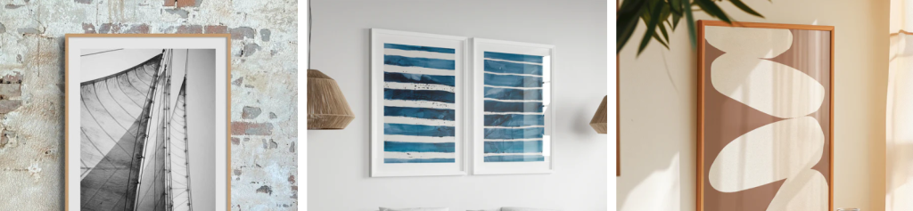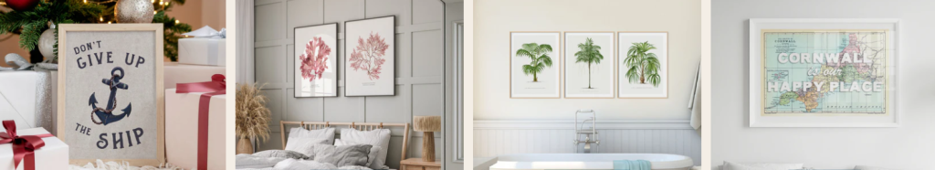 - Photography Prints: Black-and-white or colour beach photography, bringing real-world shoreline imagery to your walls.