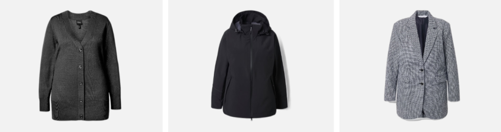 Beyond everyday wear, they also provide functional and seasonal clothing. Their outerwear collection includes warm coats, waterproof jackets, and padded vests. Additionally, they offer a variety of knitwear, loungewear, and even swimwear in plus sizes — all carefully designed to meet both aesthetic and practical needs.