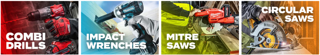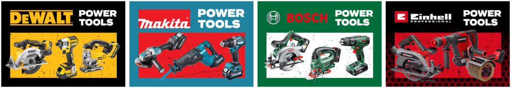 • Power Tools: Cordless drills, saws, grinders, and more from premium brands.