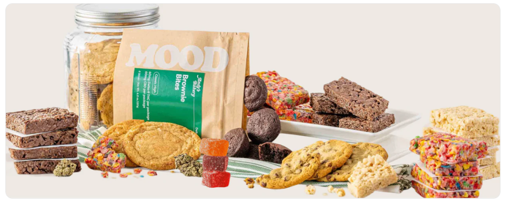Their selection is very broad: Mood carries flower (THCa) in different strains: indica, sativa, hybrid, pre-rolls, edibles including gummies and baked goods, concentrates, vapes, and beverages.