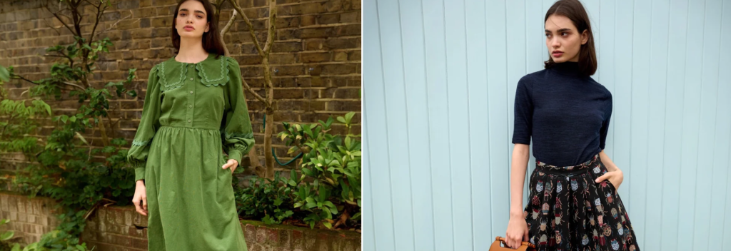 What distinguishes Louche London is its blend of personality and accessibility. Instead of relying on mass-market trends or repetitive fast-fashion templates, the brand focuses on thoughtfully designed garments that balance charm and practicality. Their vintage-inspired touches—whether in prints, tailoring, or silhouettes—give many of their pieces a distinctive character.