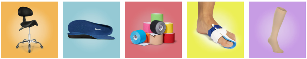 - Browse categories like Insoles, Orthotics, Braces & Supports, Compression Socks, Sports Tape, Toe Separators, Medical Equipment and Ergonomic Products.