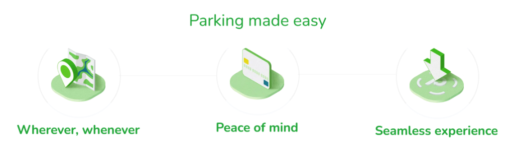 - Manage bookings via app — including starting and stopping a parking session, extending time if needed, and receiving confirmation and directions automatically.