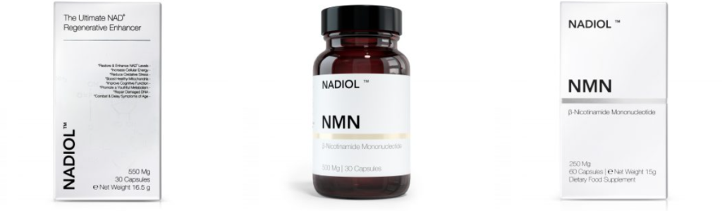 - NMN supplements — capsules delivering β‑Nicotinamide Mononucleotide, in varying strengths (e.g. 250 mg, 500 mg) and quantities. These are marketed as “pure” NMN, with the brand claiming no fillers or superfluous additives. Nadiol Pure NMN Supplement