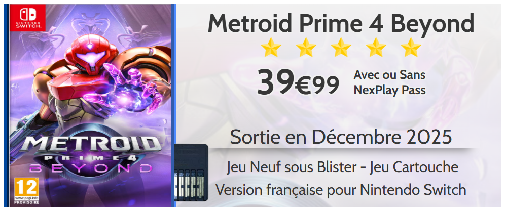La marque Nexplay est spécialisée dans la vente de jeux vidéo pour tous les types de consoles et plateformes. Elle s’adresse aux passionnés de gaming, qu’ils soient joueurs occasionnels ou hardcore gamers, en proposant une sélection variée qui couvre les dernières sorties ainsi que les classiques incontournables.