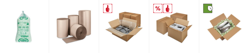 - Prodotti per la protezione: cuscini d’aria, imbottiture in schiuma, cartone ondulato e materiali antiurto per garantire che gli articoli fragili arrivino a destinazione integri.